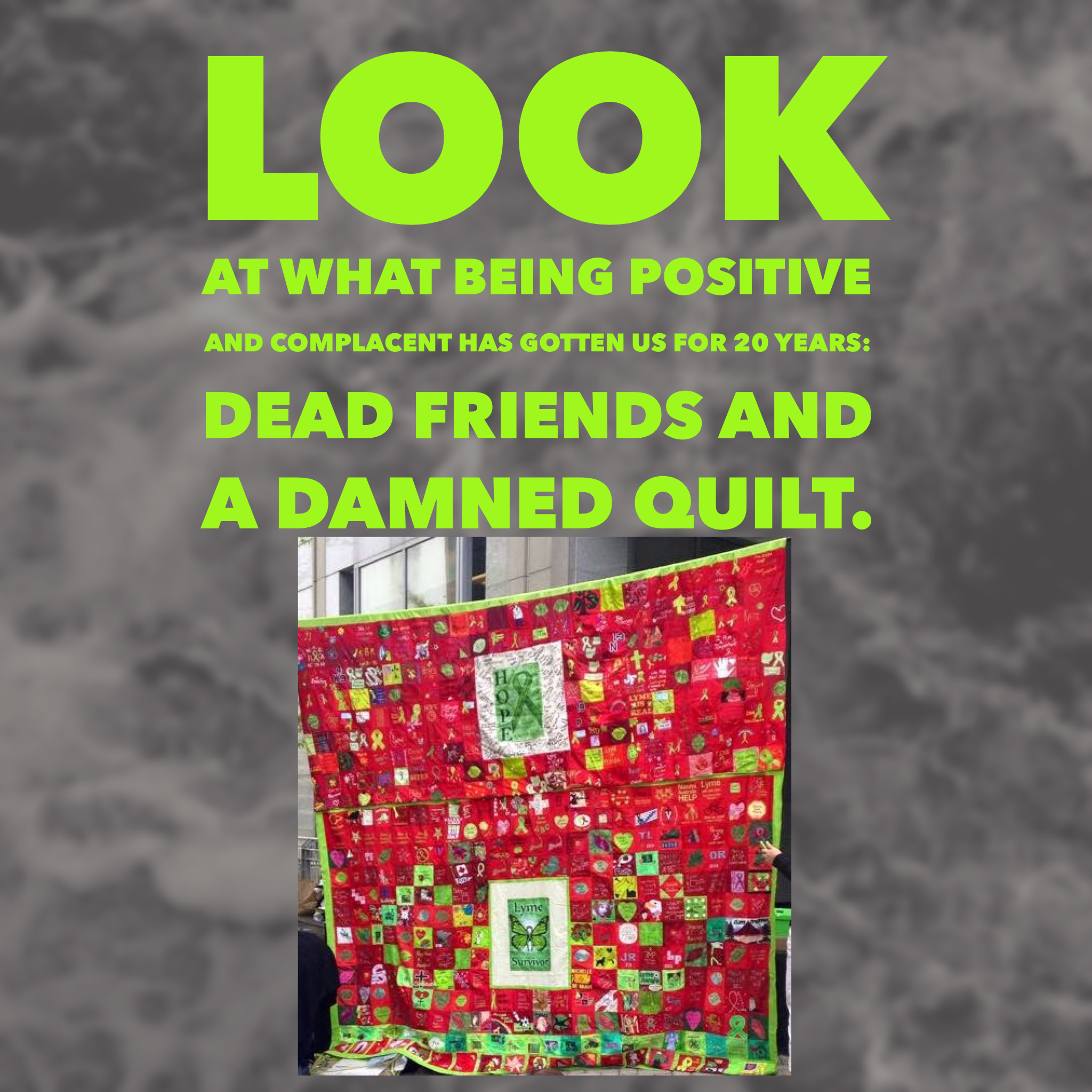 Get angry about the fact that your disease will never be accepted or properly treated until ILADS and LDA and their supporters get out of the way. Because as long as they waste our time and energy and money to protect THEIR interests, the truth stays buried under their faux activism and manufactured controversy.