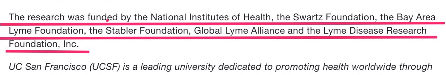 I don’t know who Swartz and Stabler are, but we all certainly recognize NIH, Bay Area Lyme Foundation (BALF) and Global Lyme Alliance. I called GLA and left a message for Scott Santarella, asking if he is aware that his organization is supporting the frauds who keep us “chronic Lyme” patients sick, abused and marginalized, but he never called back. Interpret that as you will.